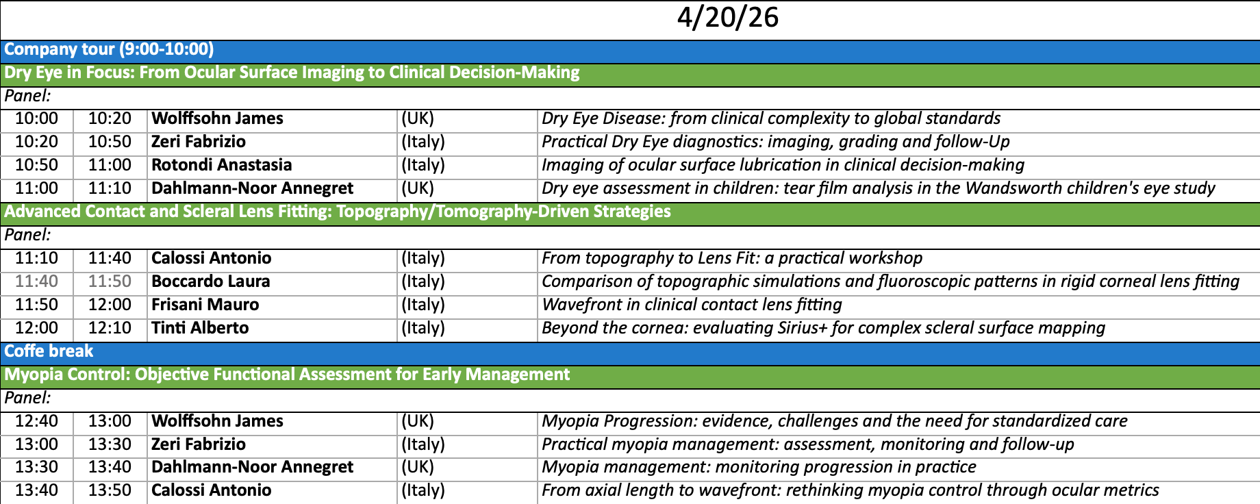 ATTENTION: Please note that opticians/optometrists may only attend the event dedicated to them on April 20 at the company's premises. April 19 is reserved for eye doctors.